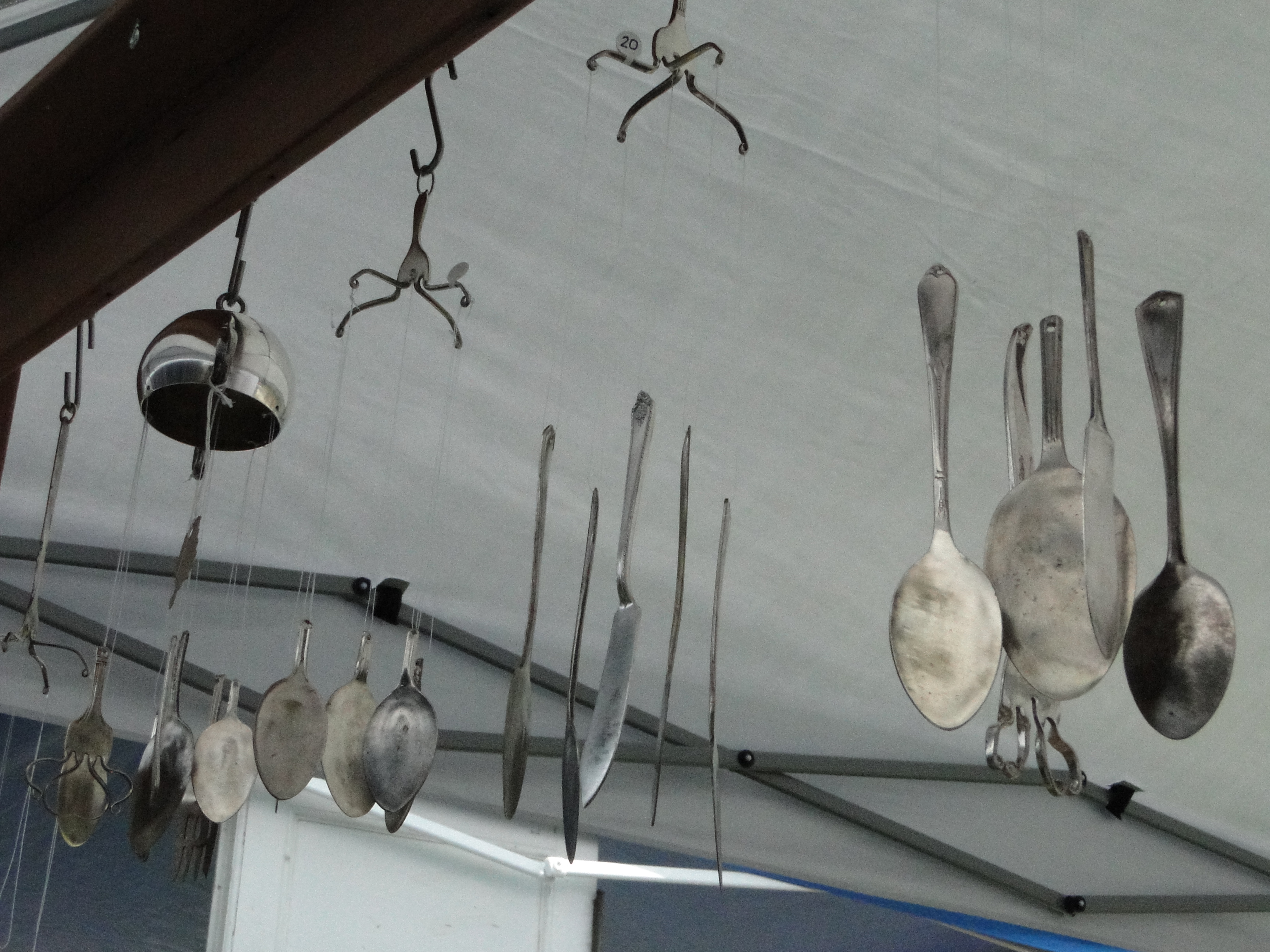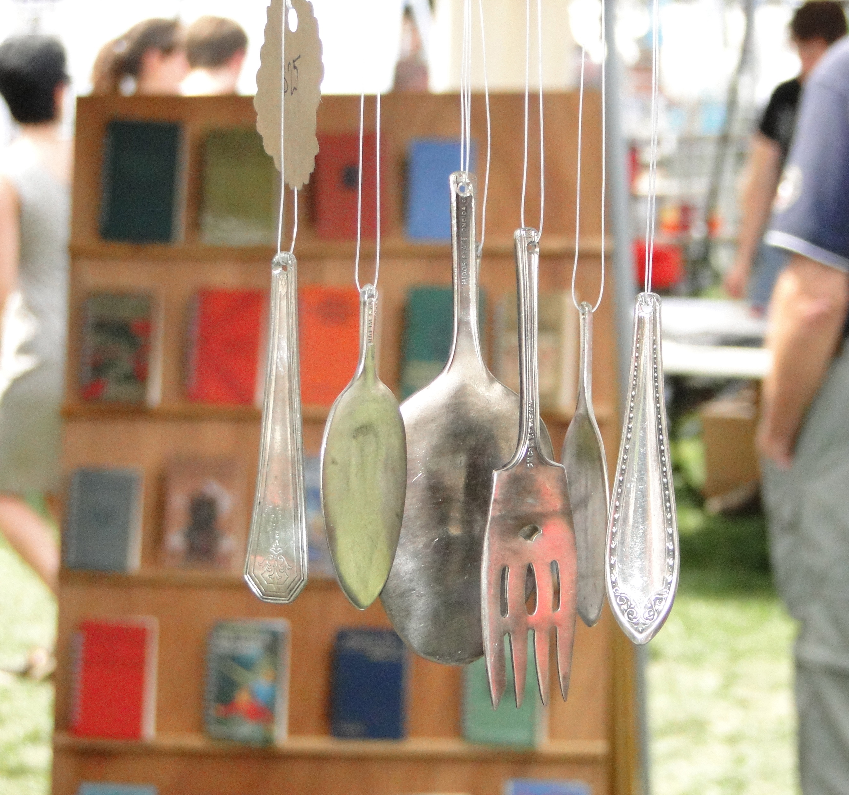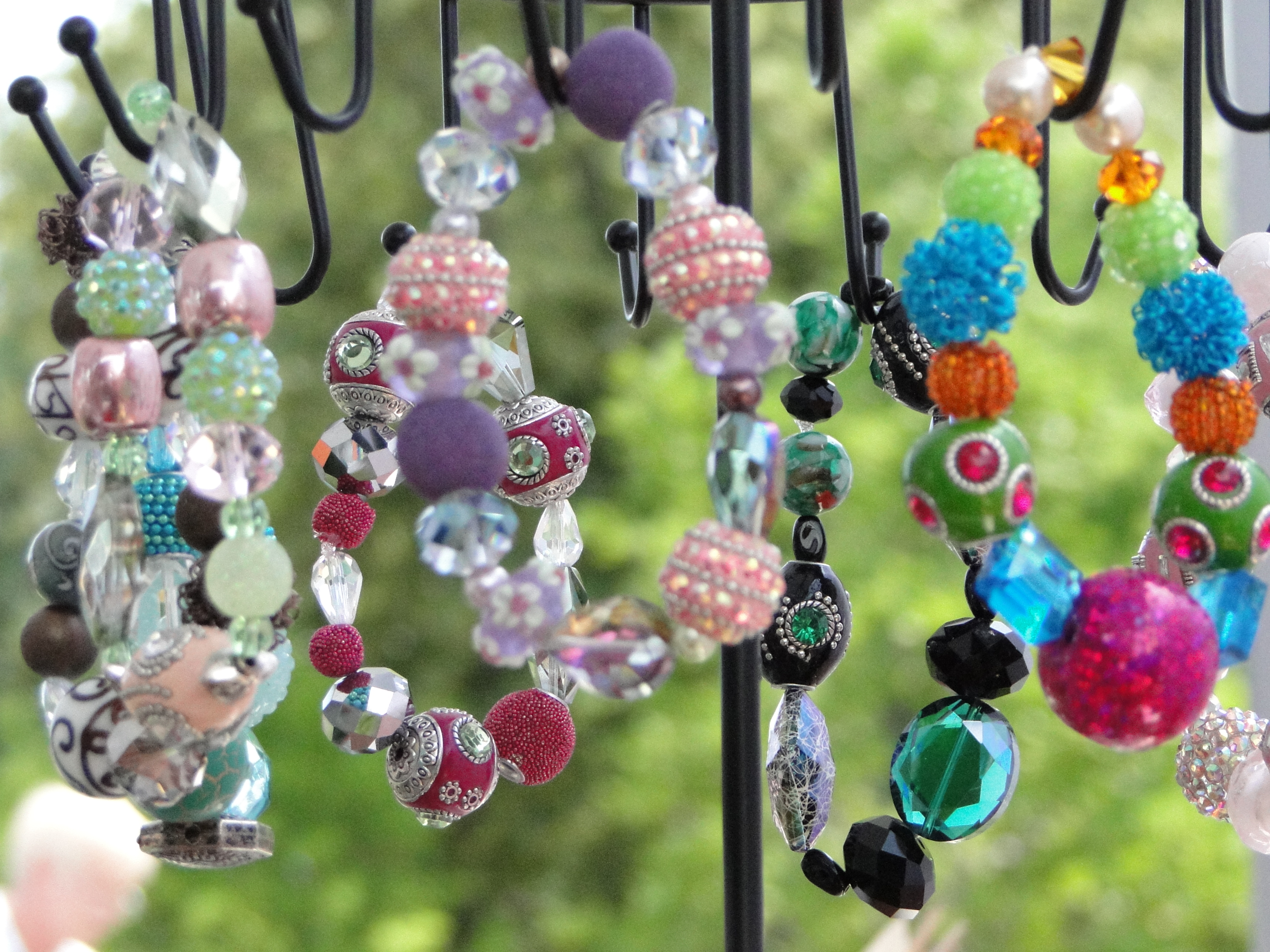 A couple of shows coming up so it was back to the basement this past weekend. I made a few wind-chimes while Pa had rings, and hair barrettes ready to go… and fan pulls/holiday ornaments.